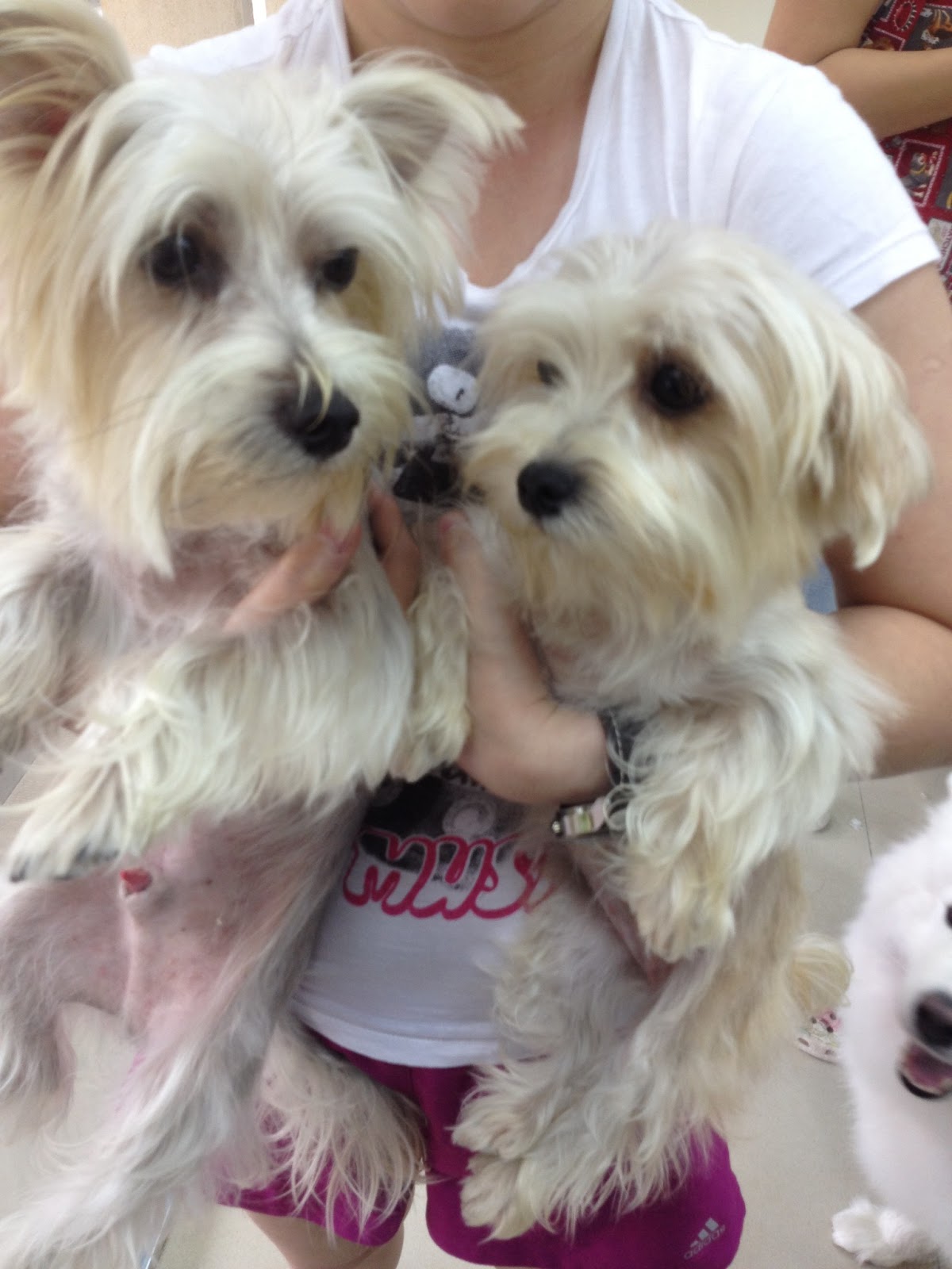 The right photo is Boyboy's after grooming photo, with a Badana given by his groomer.